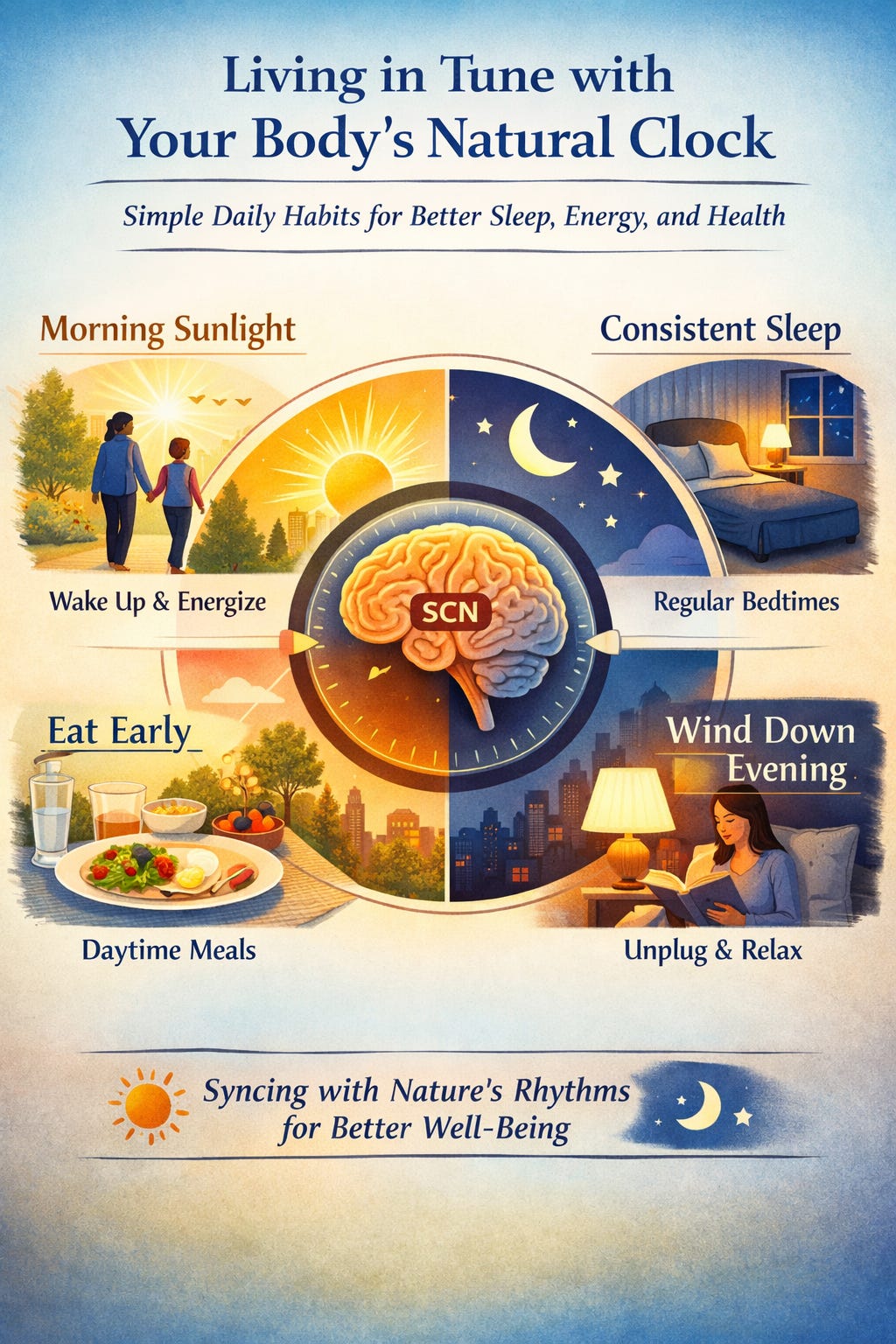 But small habits—morning light, consistent sleep, daytime movement, and calmer evenings—can gradually bring the body back into alignment.